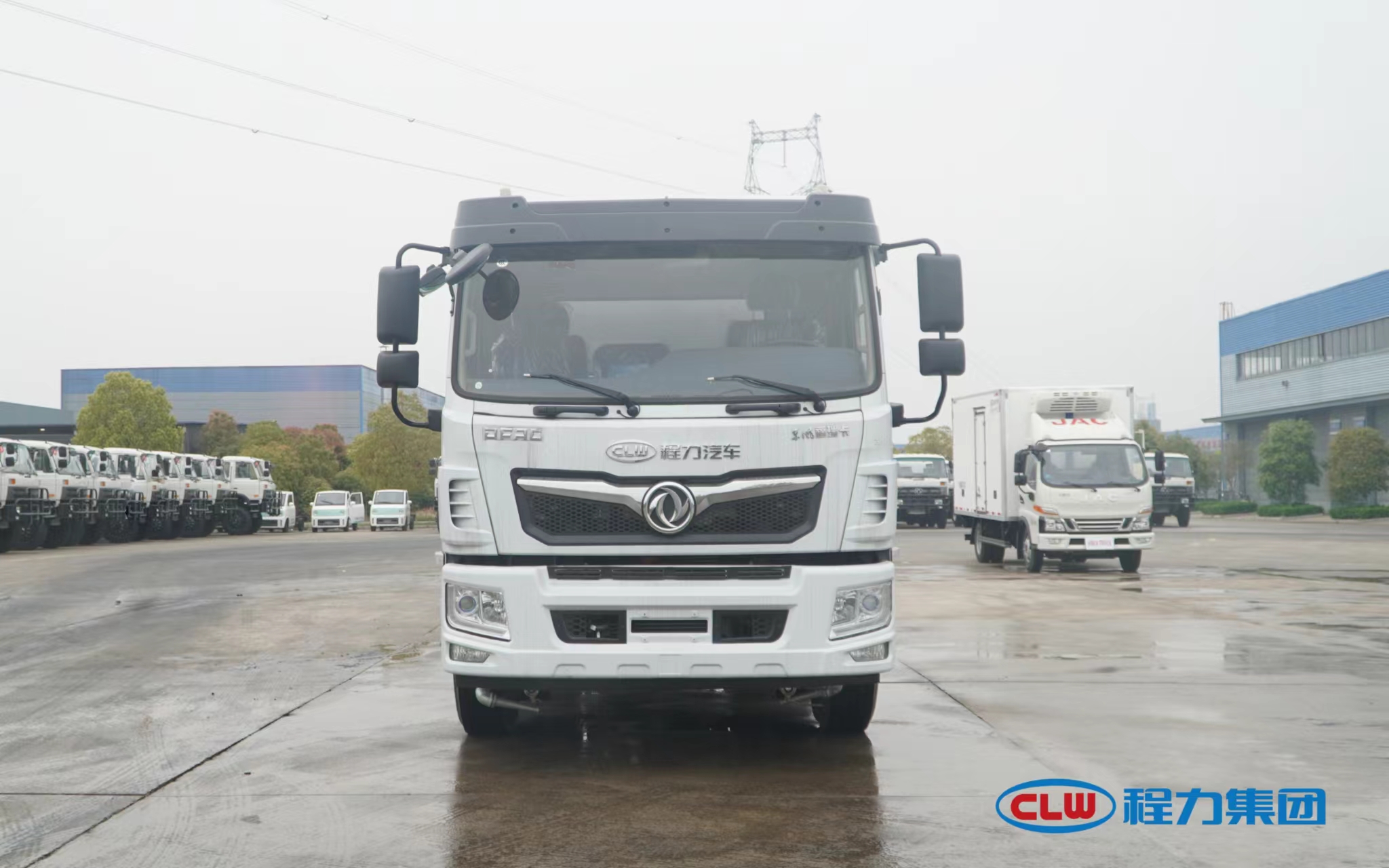 底盤配置:采用東風F9福瑞卡排半帶翻轉駕駛室,法士特8檔變速箱,4500mm軸距,10.00R20鋼絲胎,10噸後橋,帶空調,abs,斷氣刹。