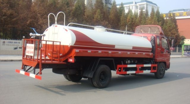 改裝配置:罐體用4MM碳鋼板製作,罐內隔板具有防波作用,以減低汽車行駛時罐體液體的衝擊。整車帶一個專用灑水泵(垂直最大吸程6米),灑水寬度14米,射程28米。多功能灑水車配備2個前衝(噴)(能將路麵泥巴、塵土、垃圾衝幹淨);2個後灑(能均勻地將水灑在路麵,一次灑水寬度14米)、2個側噴(花灑)(能均勻地將路旁綠化帶澆灌)、帶1個後工作平台,平台上安裝1個綠化灑水高炮(灑水炮可全方位旋轉,可連續調成直衝狀、大雨、小雨、毛毛雨,霧狀可調節衝洗高大樹木),引水時間<5min,流量90m3/h。帶1個消防接頭,帶1個自流閥,1個過濾裝置、人性化爬梯及側防護欄,安裝灑水音樂喇叭。