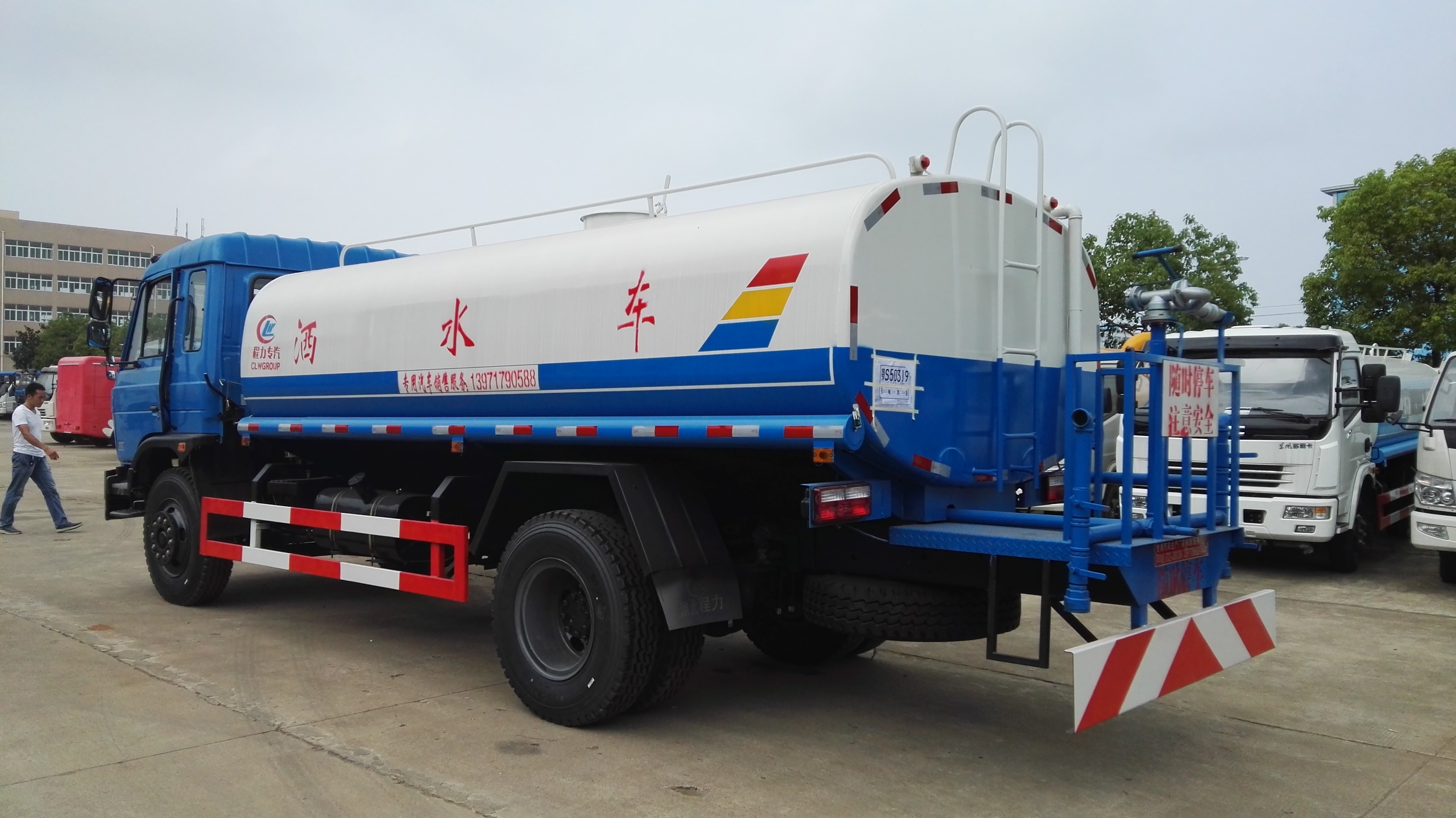 灑水車罐體容積:11立方    發動機:東風康明斯190馬力國四柴油發動機。