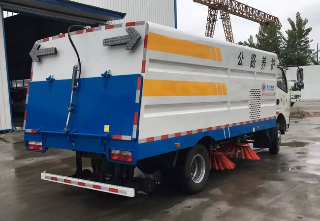 掃路車標準配置:水箱容積:2立方,垃圾箱容積:6立方;帶掃盤4把,掃盤轉速實現獨立3檔調速;江鈴78馬力副發動機;大力或三洋馬達;施耐德控件開關;台灣液壓閥或海普瑞斯電磁閥組;長源液壓油泵;新西山水泵;免維護自分離式離合器;免維護風機;尾部LED箭頭燈;手動泵應急係統;前掃刷臂轉動機構使用高新耐磨工程隔套,免打黃油;精密冷彎無縫液壓油管。清掃寬度:2.8--3.2米,清掃速度:3-20km/h,最大吸入粒度:120mm,最大清掃能力:50000 m2/h。